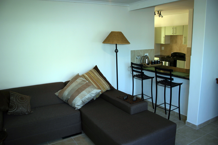 The open plan living space has 3 separate areas, one set up as a "Den" with Sea views, corner suite and wide screen TV served by DSTV Satellite.